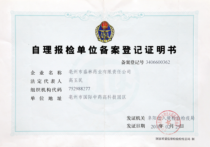 自理報檢單位備案證明書